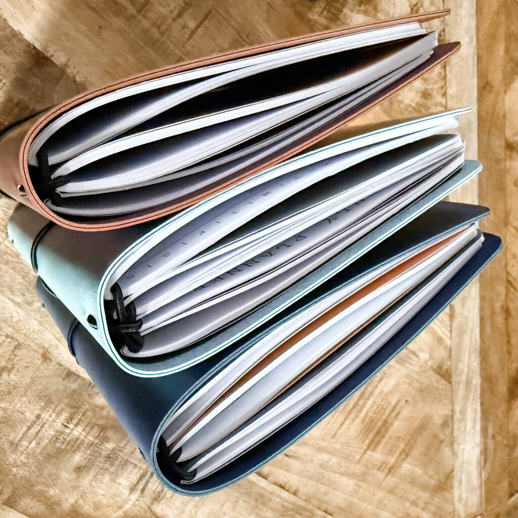 A beautifully crafted vegan leather folio designed to hold A5 planners and journals, with optional interchangeable inserts to build your perfect planning system.