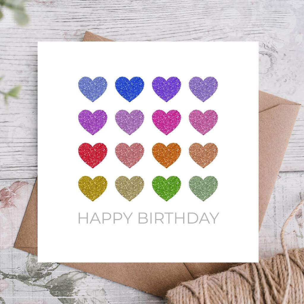 Rainbow Hearts Colourful Birthday Card