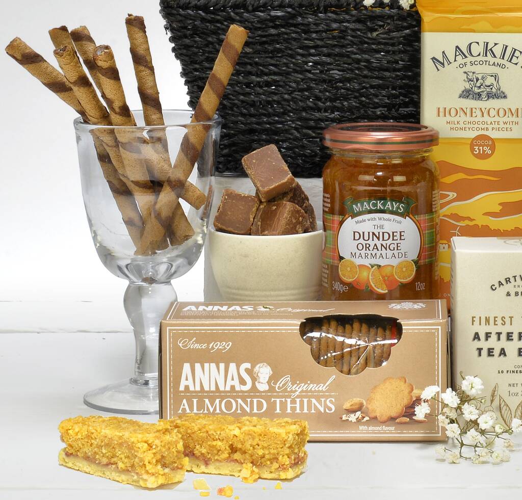 Our Afternoon Tea Hamper is the perfect way to enjoy a touch of indulgence and relaxation. Beautifully presented, it includes a carefully curated selection of sweet and savoury delights to complement a comforting cup of tea. Inside, you’ll discover fine tea bags, delicate almond thins, indulgent fudge, and crisp wafer rolls, alongside artisan chocolate and a jar of marmalade for a traditional touch. Whether gifted to a loved one, shared with friends, or enjoyed as a personal treat, this hamper brings elegance and charm to any teatime occasion. A thoughtful gift that makes everyday moments truly special.