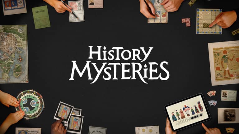 History Mysteries are immersive, family-friendly adventure games. Open the mysterious package and connect online to discover a world of tricky puzzles, colourful characters and time-travelling adventure! All you need is a pen, an internet connection... and your wits.