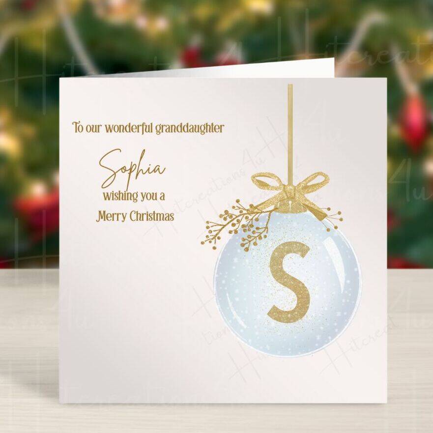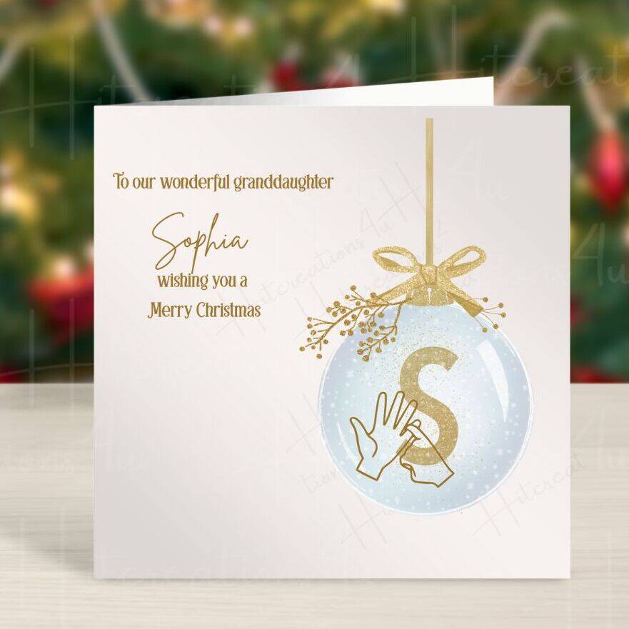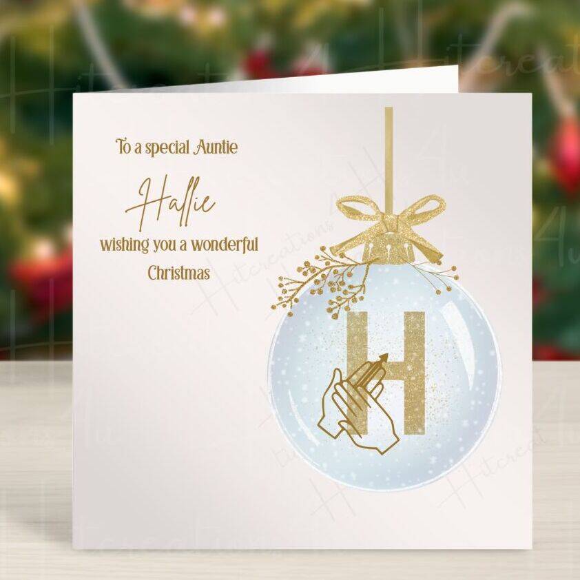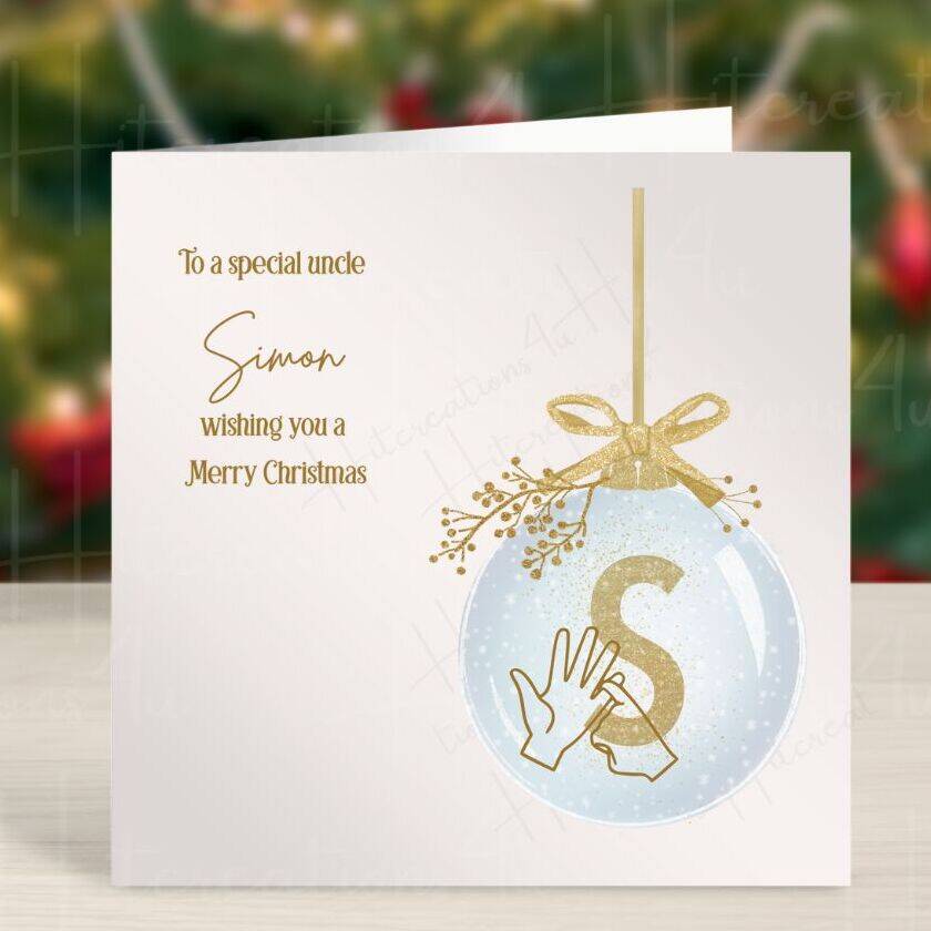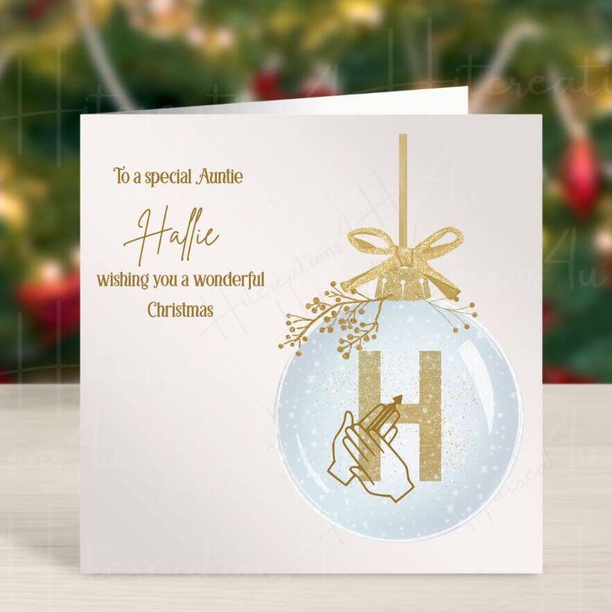 Personalised Christmas Card Gold Bauble Bsl Or English