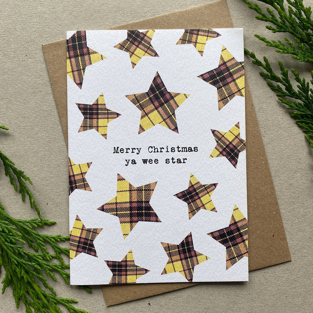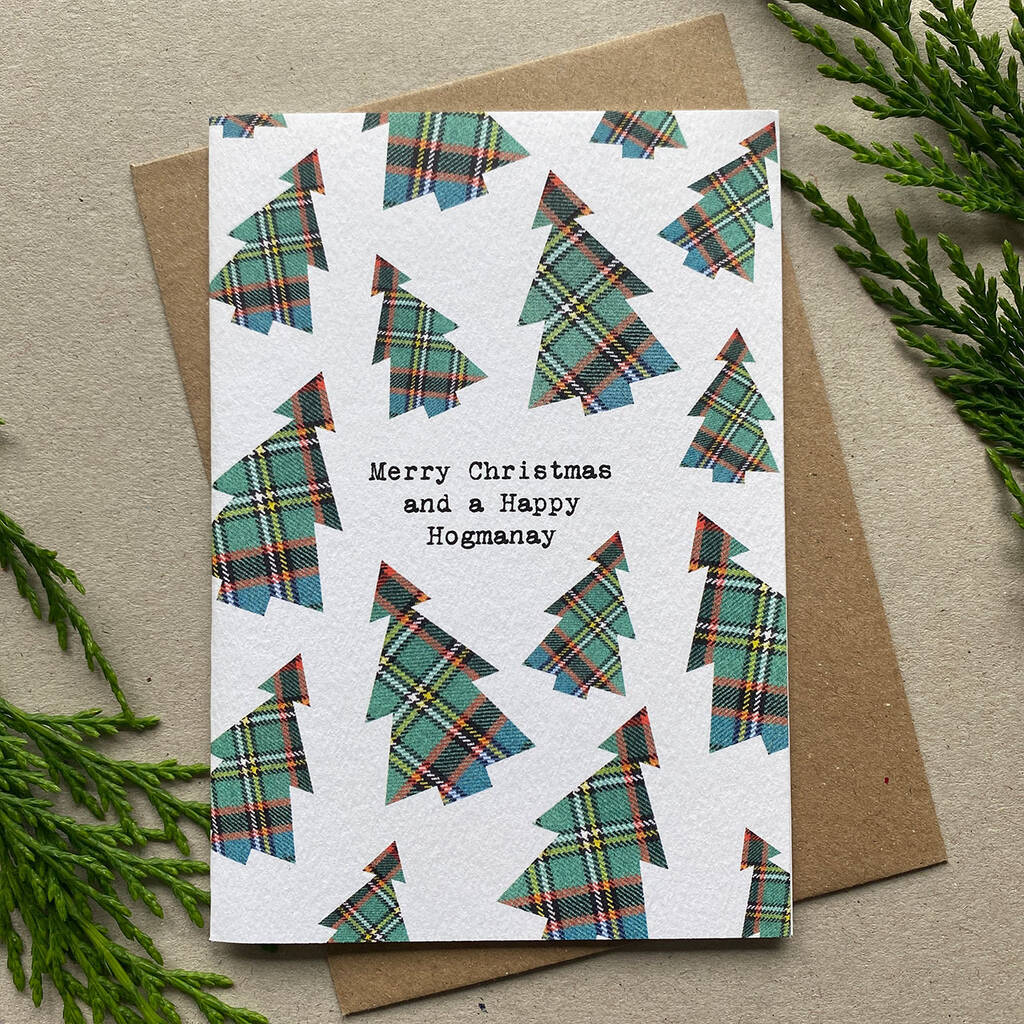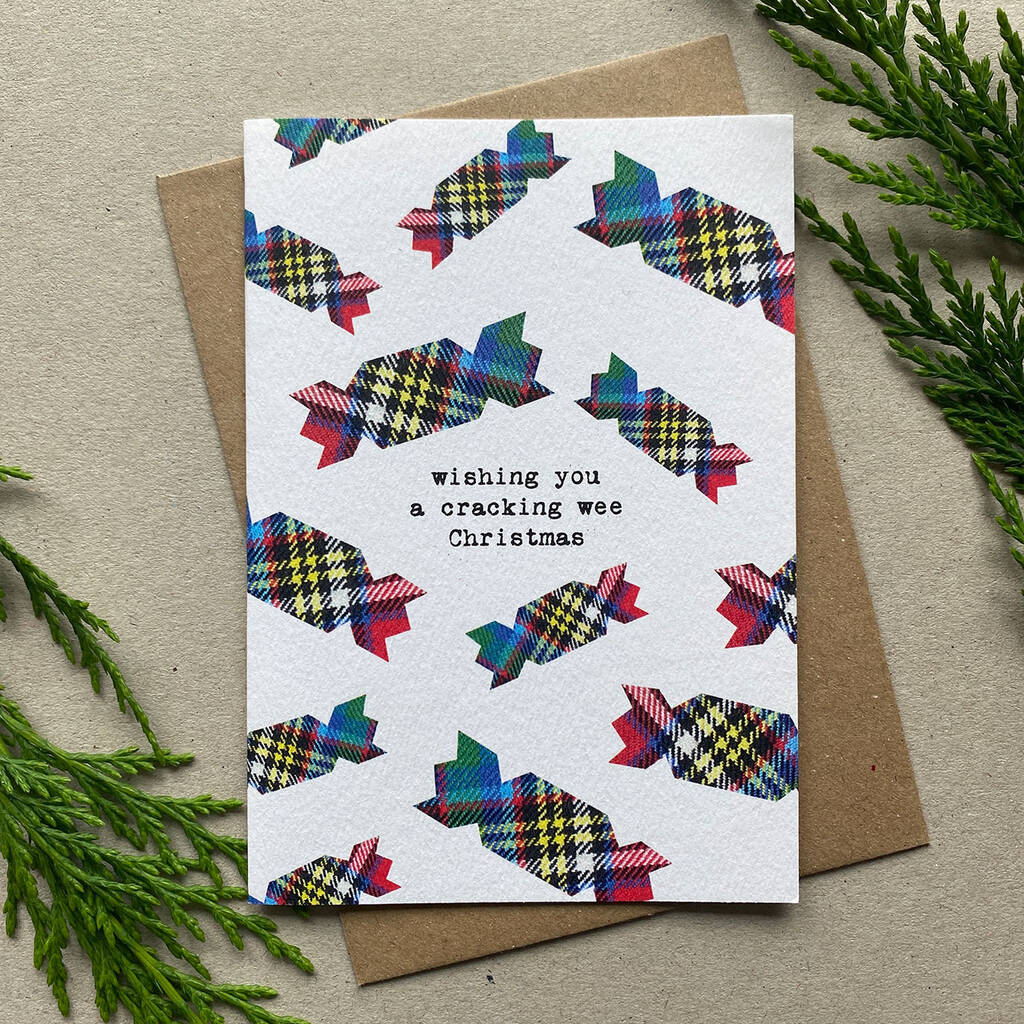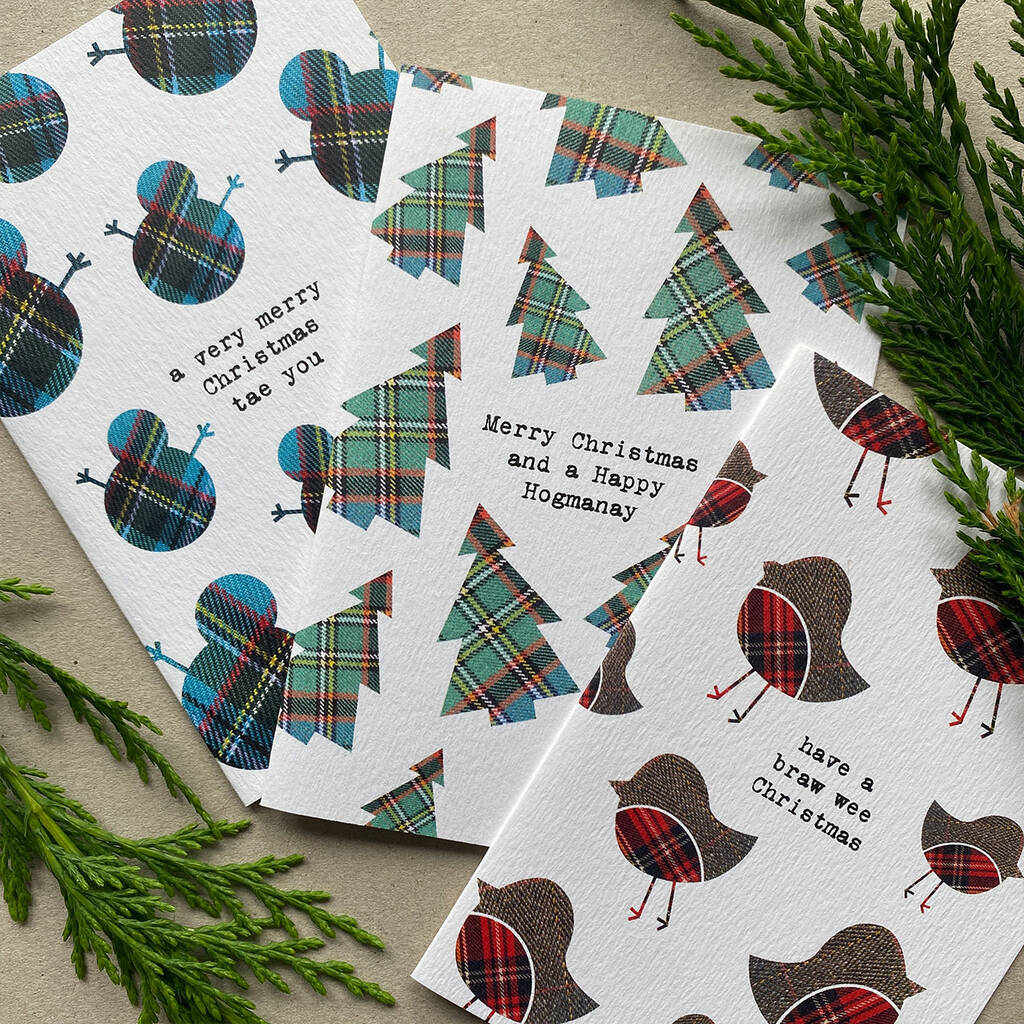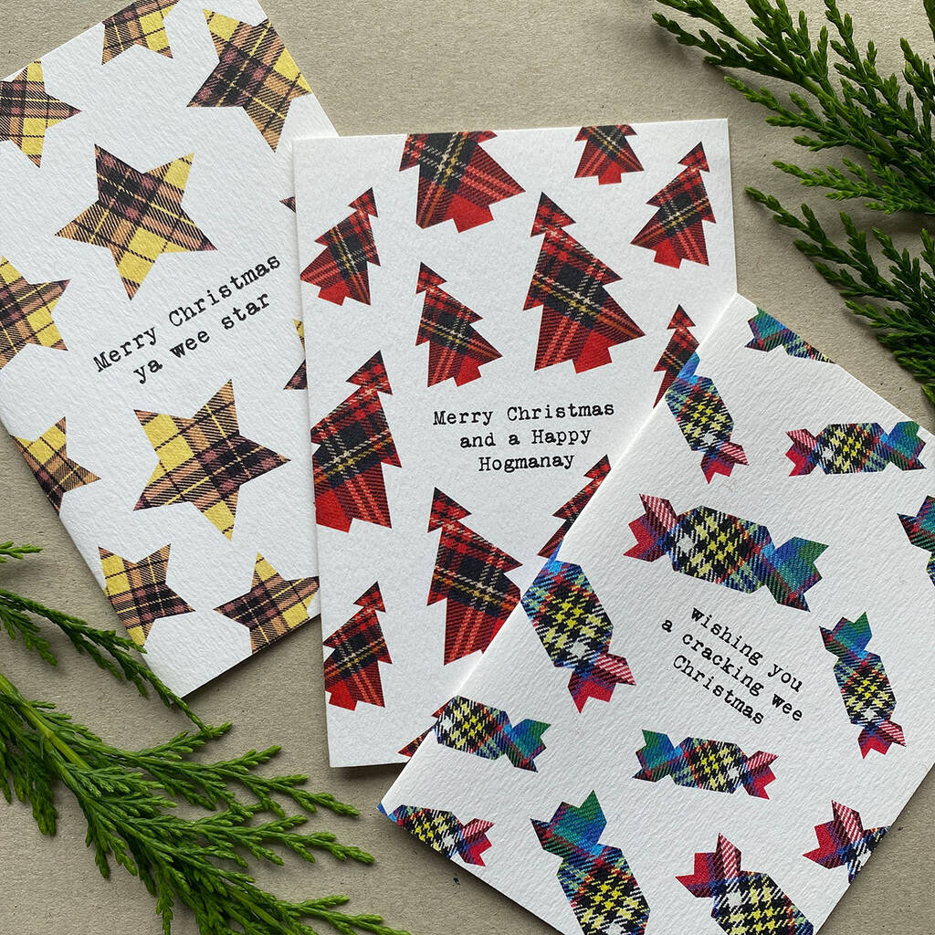 Set Of Six Scottish Christmas Cards With Tartan Pattern