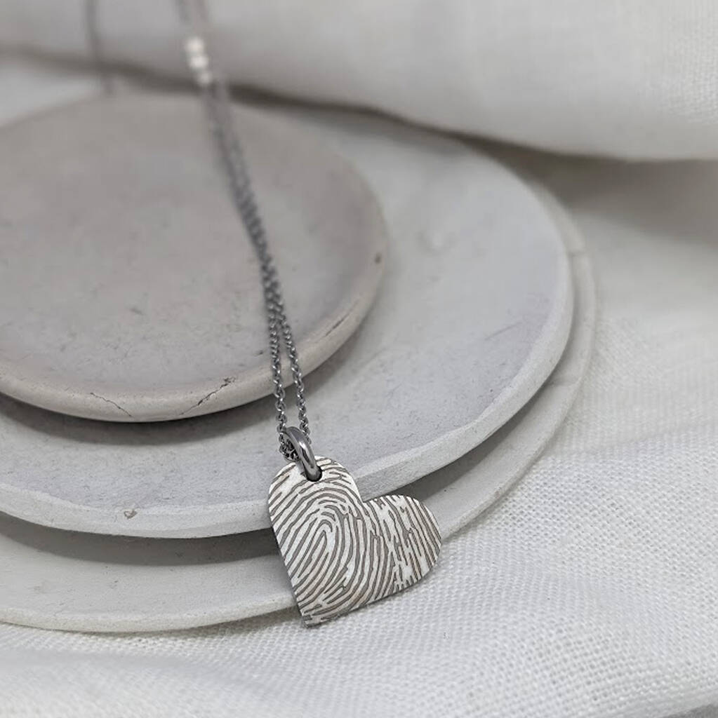 Personalised Fingerprint Heart Stainless Steel necklace which can feature engraved handwriting or text on the reverse!