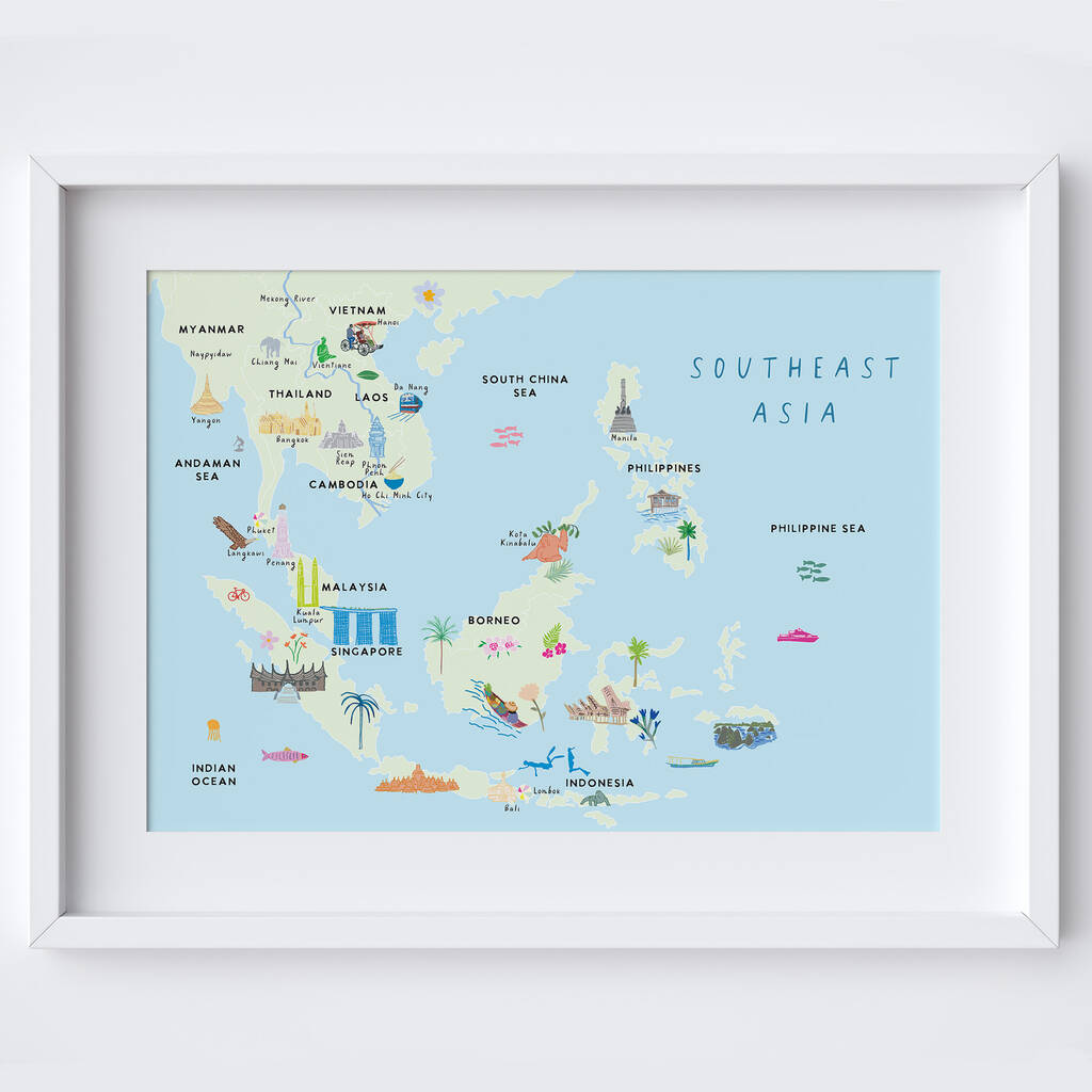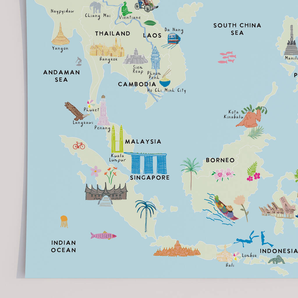Illustrated Map Of South East Asia Art Print
