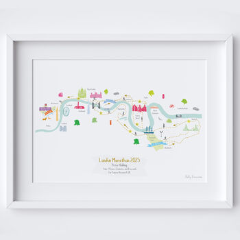 Illustrated art print map showing the 26.2 miles of the London Marathon, available to personalise.