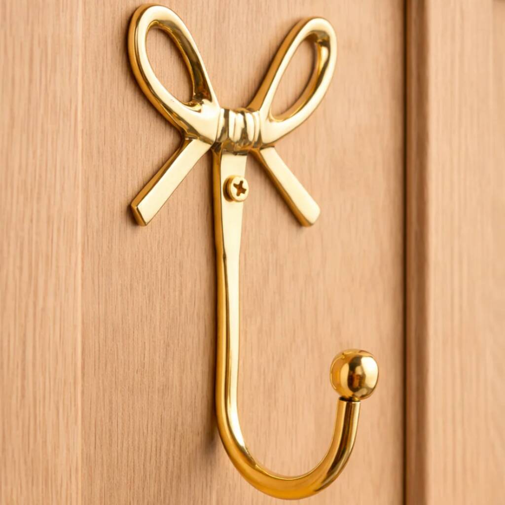 Add a beautifully decorative yet practical accent to your home with these Bow Design Brass Wall Hooks. Crafted from high-quality solid brass, each hook features an elegant bow silhouette that brings a subtle vintage charm to your walls. The polished golden finish reflects light softly, adding warmth and sophistication to any space.