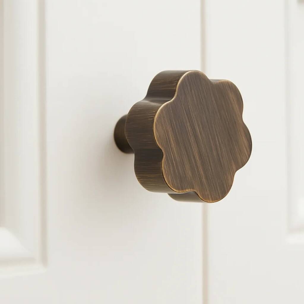 Crafted from high-quality solid brass, this decorative knob features a stunning six-petal floral design (hexapetalous) inspired by botanicals.Crafted from high-quality solid brass, this decorative knob features a stunning six-petal floral design (hexapetalous) inspired by botanicals.