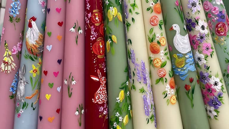 Hi, I'm Becky, a countryside based artist specialising in making your homes, dinner tables or gifts extra special with my lovingly hand painted pairs of candles. Each design takes inspiration from my travels to sunnier climes, the ever changing seasons and abundunant lush countryside surrounding me, I rarely step out on a foray without jotting down an idea for my next design.