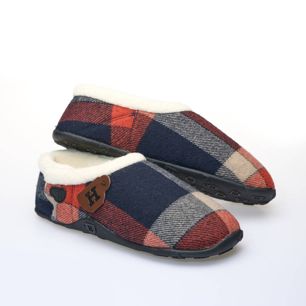 Todd Navy And Orange Check Mens Slippers Indoor/Garden Shoes