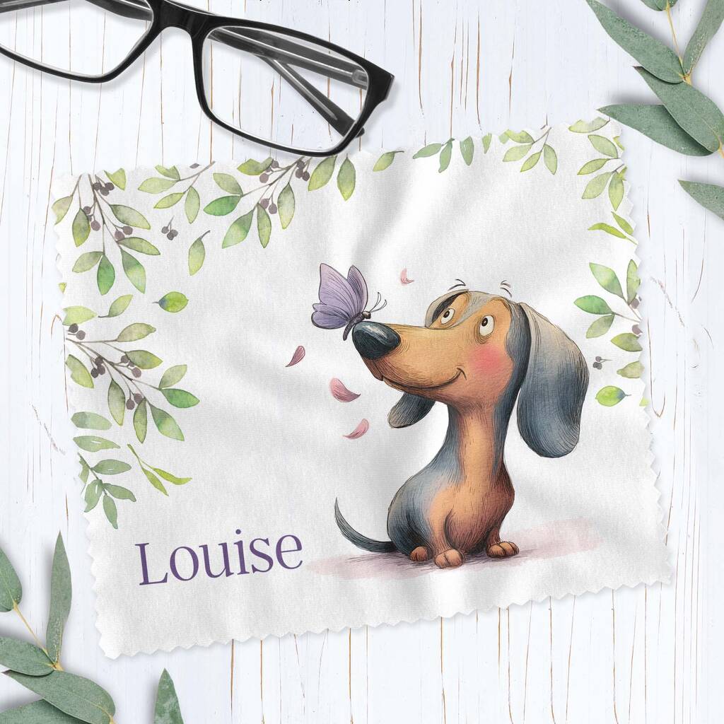 Personalised Dachshund Butterfly Glasses Cloth