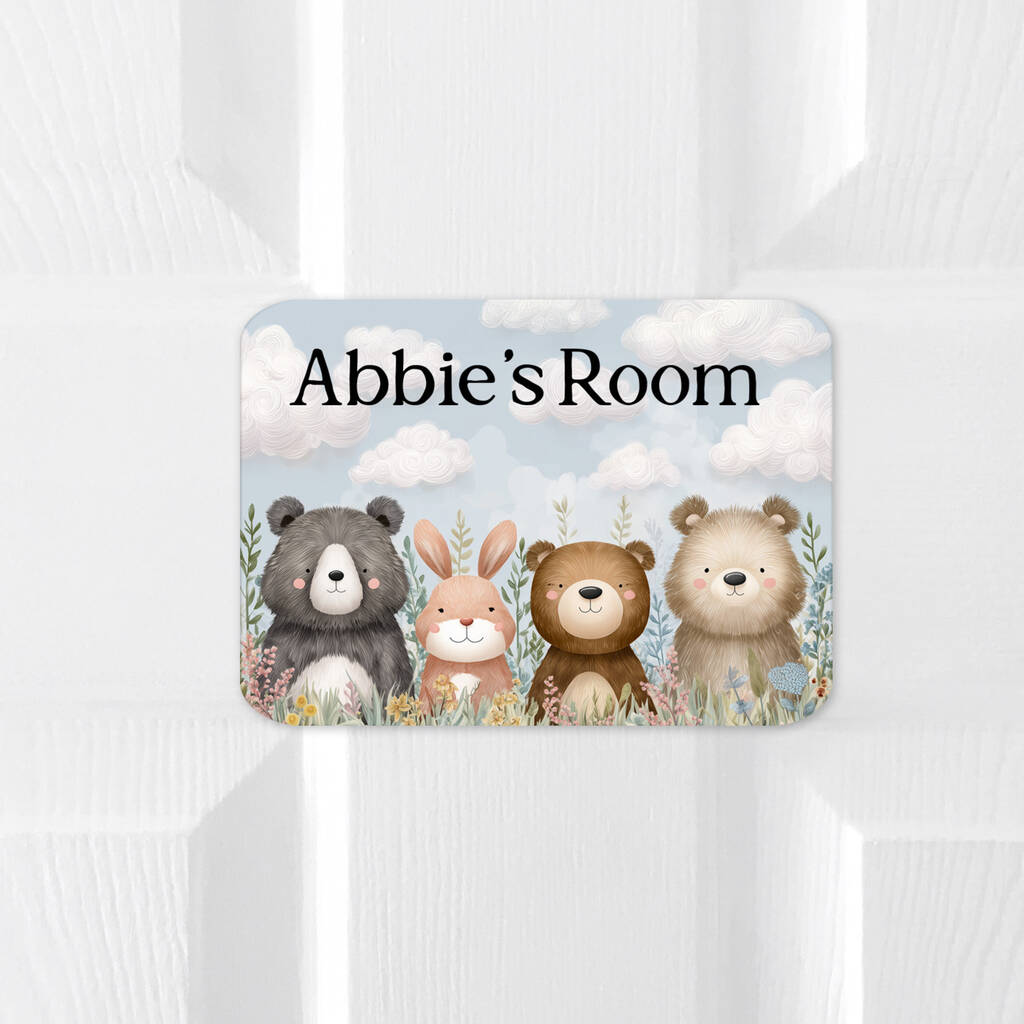 Personalised Woodland Bears And Rabbit Bedroom Door Sign