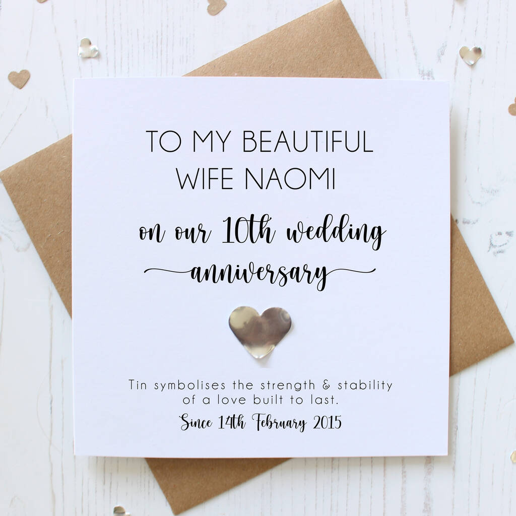This 10th anniversary card is the perfect keepsake for a husband, wife, couple, daughter and son-in-law, or son and daughter-in-law.