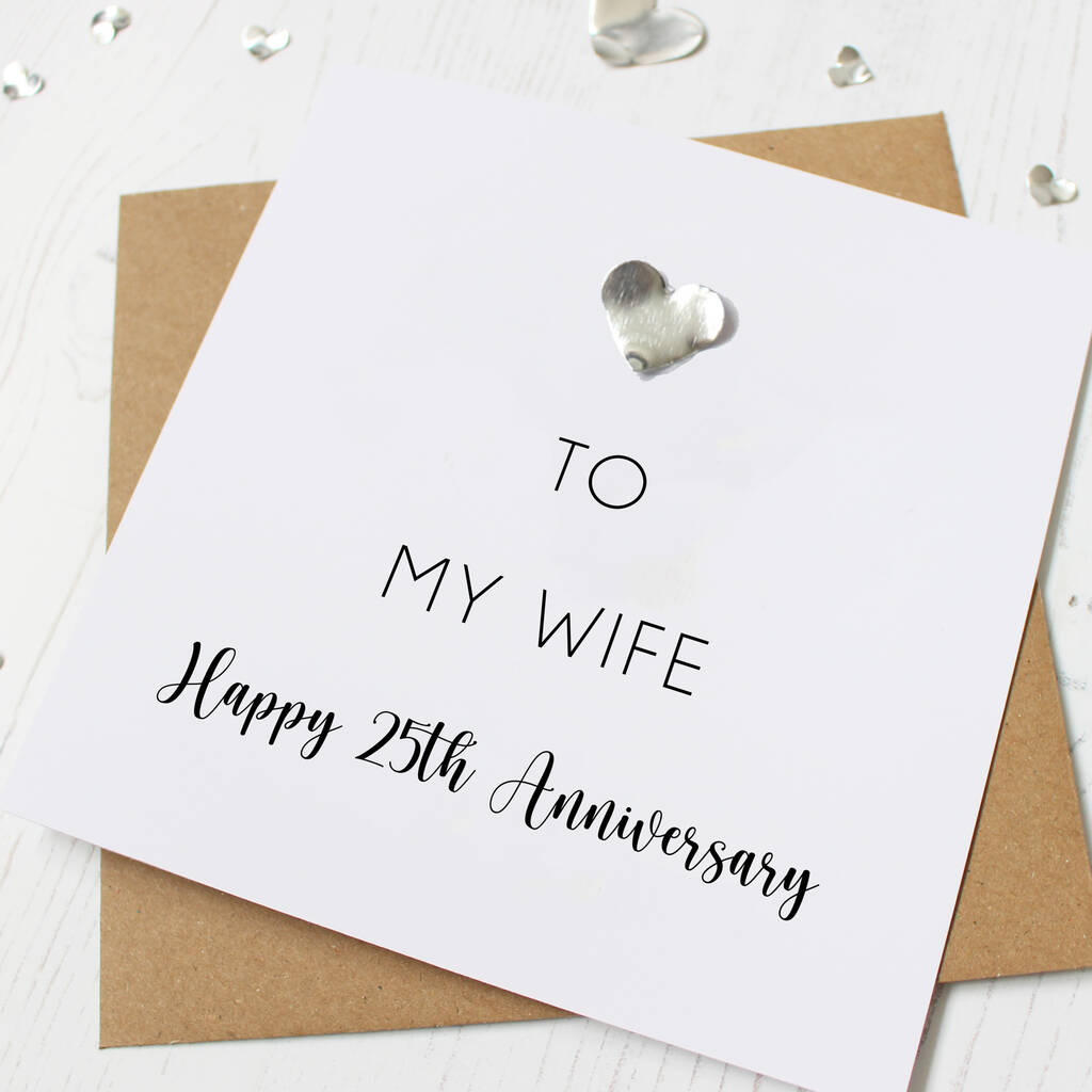 Featuring the heartfelt words “To My Husband, Happy 25th Anniversary” and finished with a striking metallic silver heart, this elegant card is a perfect way to mark twenty-five years of marriage.
