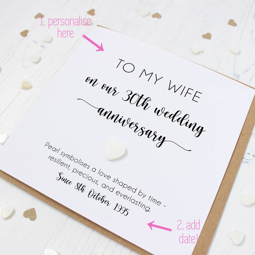 Featuring a handcrafted pearl shell heart - the traditional symbol of the pearl anniversary - this keepsake card is a meaningful way to mark thirty incredible years together.