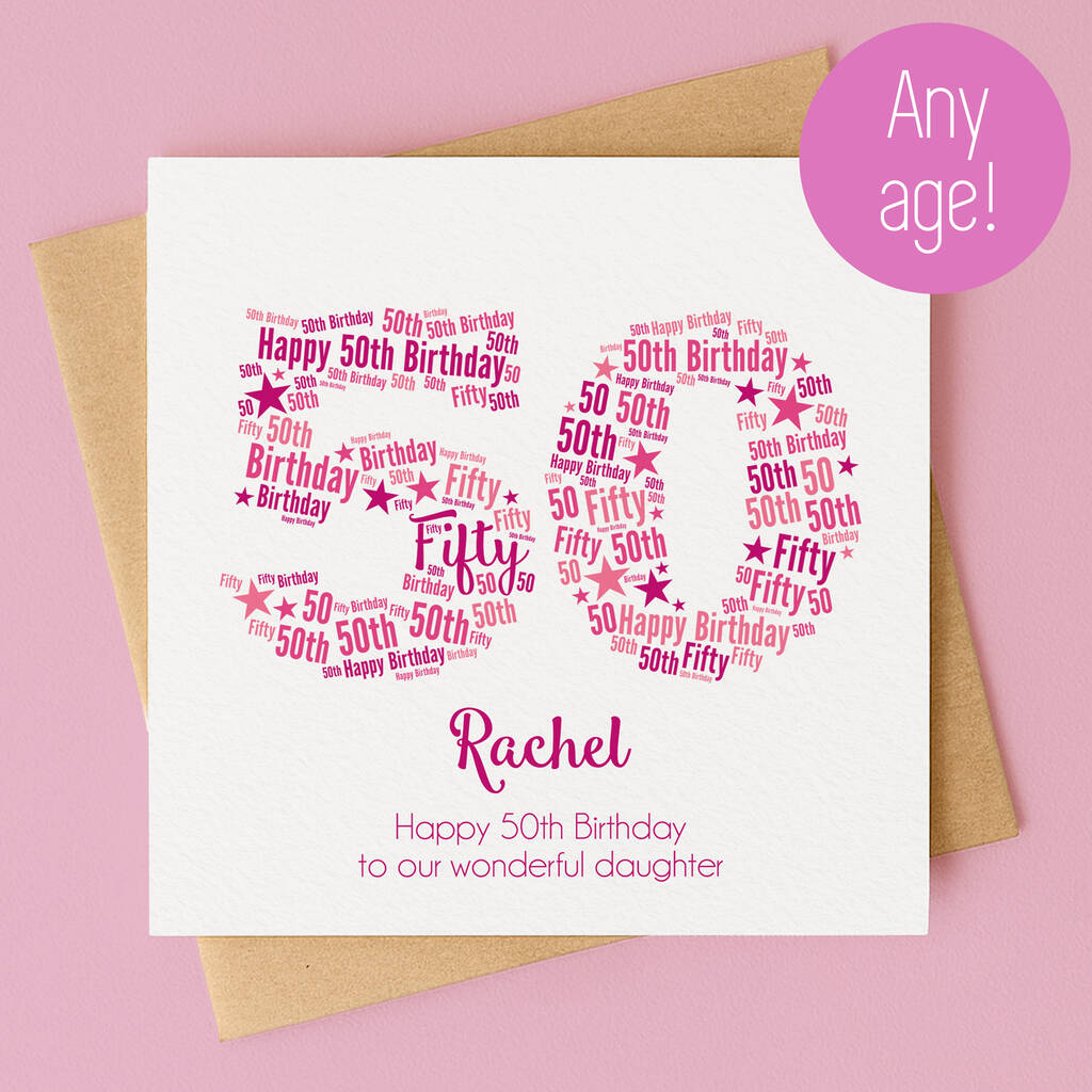 Personalised Pink Star 50th Birthday Card