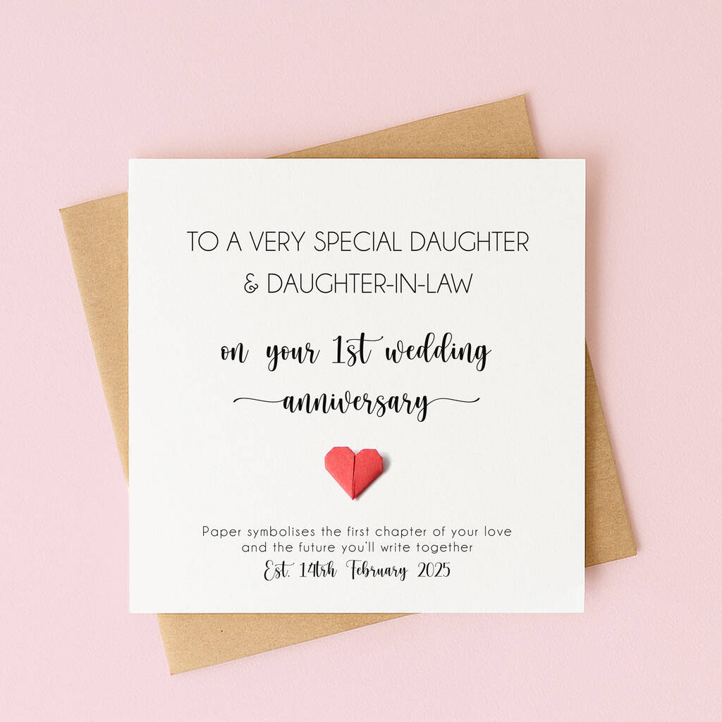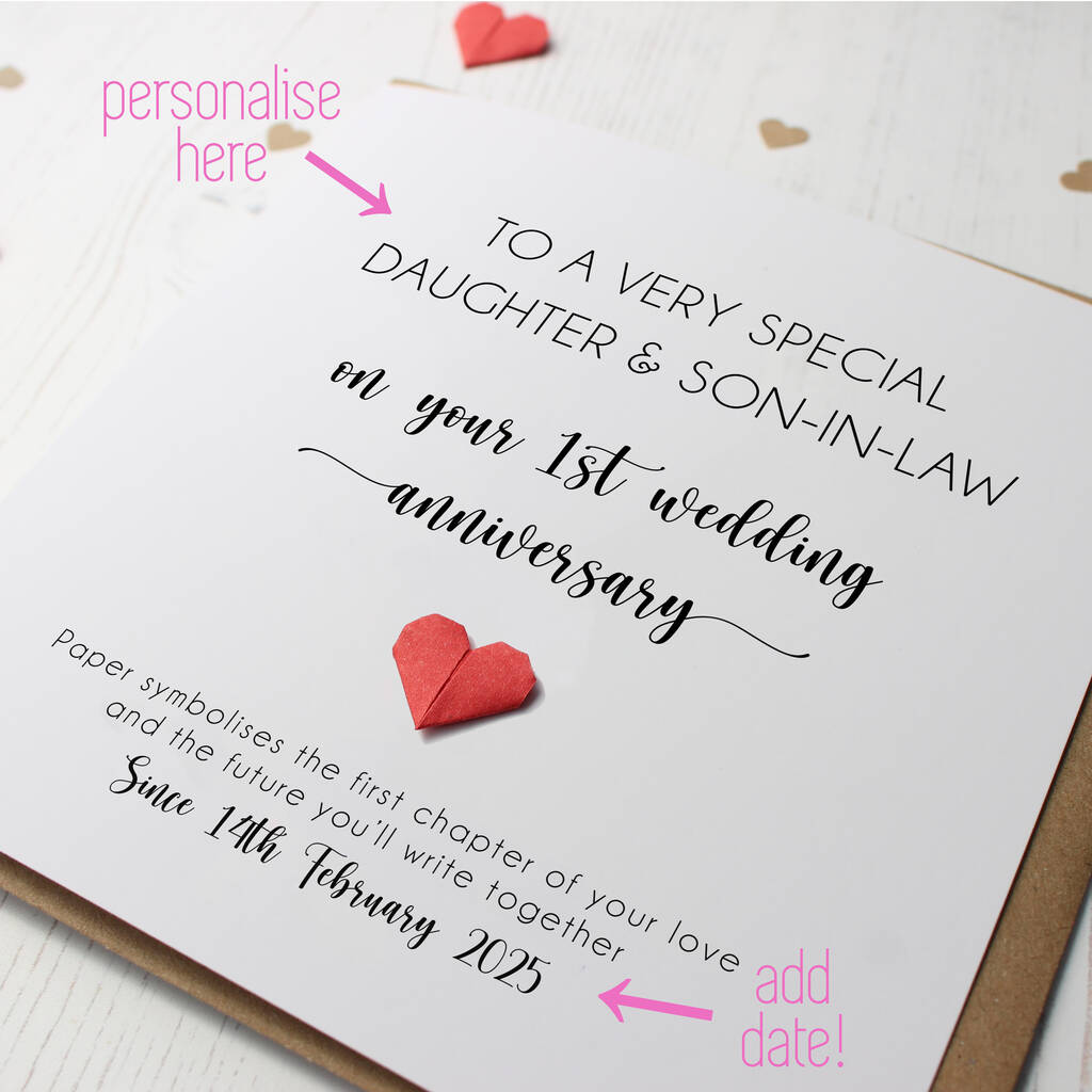 Personalised 1st Anniversary Card For Daughter And Son In Law/Son And Daughter In Law, 1 of 6