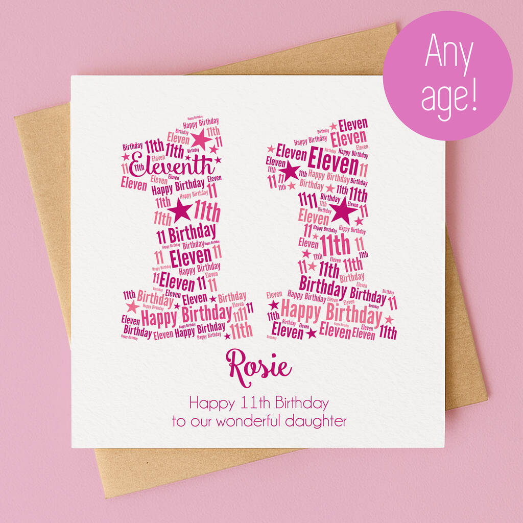 Personalised Pink Star 11th Birthday Card