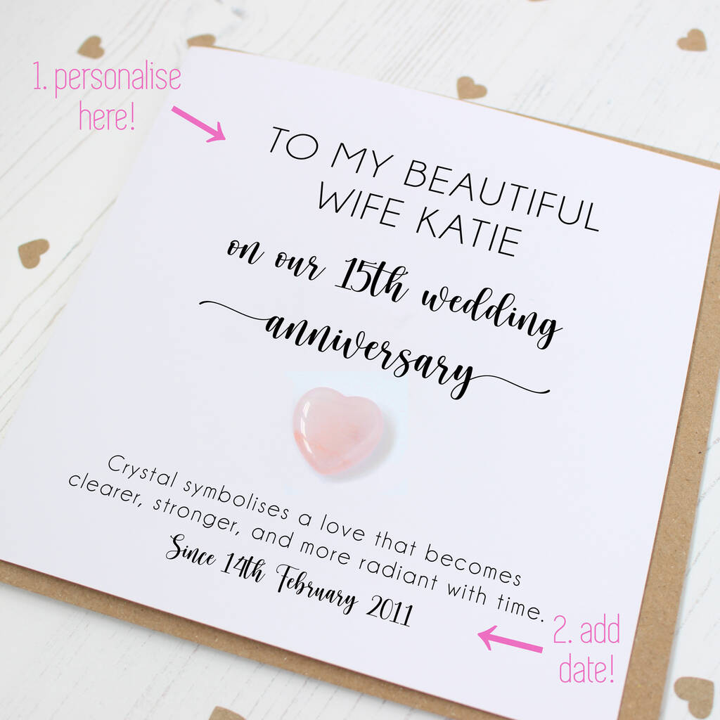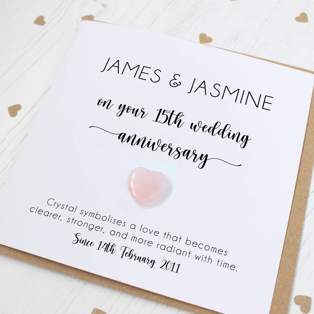 Celebrate a beautiful milestone with our personalised 15th wedding anniversary card, featuring a gorgeous crystal heart.