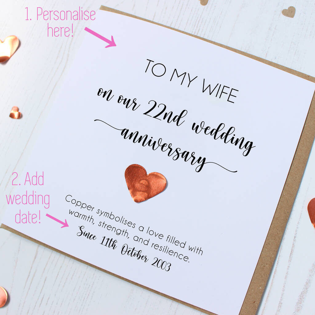 Whether you're celebrating your own cooper wedding anniversary or searching for a thoughtful gift for a couple marking their 22nd year together, this card is a heartfelt way to commemorate the occasion.