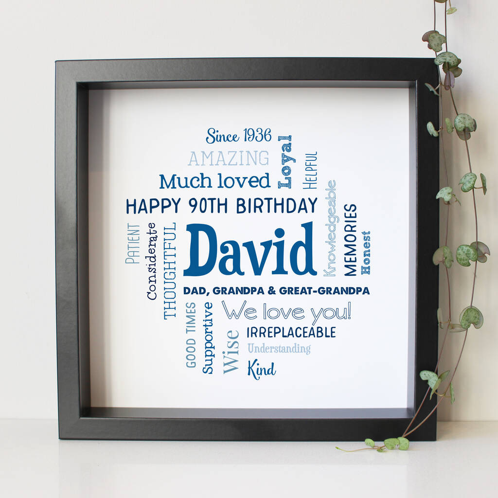 Turn your words into wow with this beautifully personalised 90th Birthday word art print.