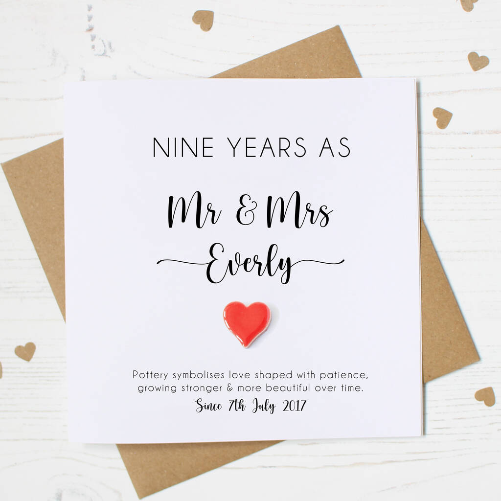 Personalised 9th Wedding Anniversary Card With Pottery Heart