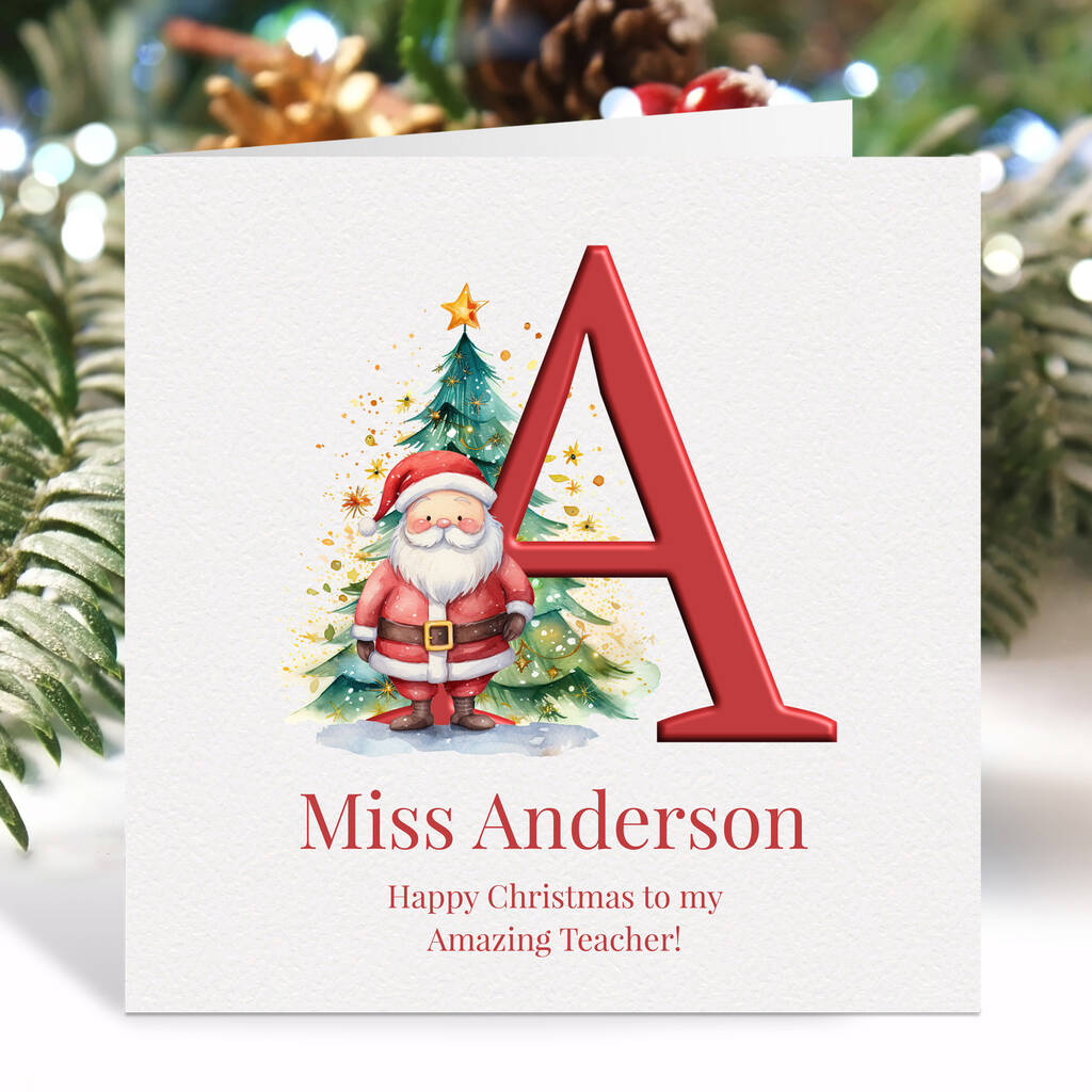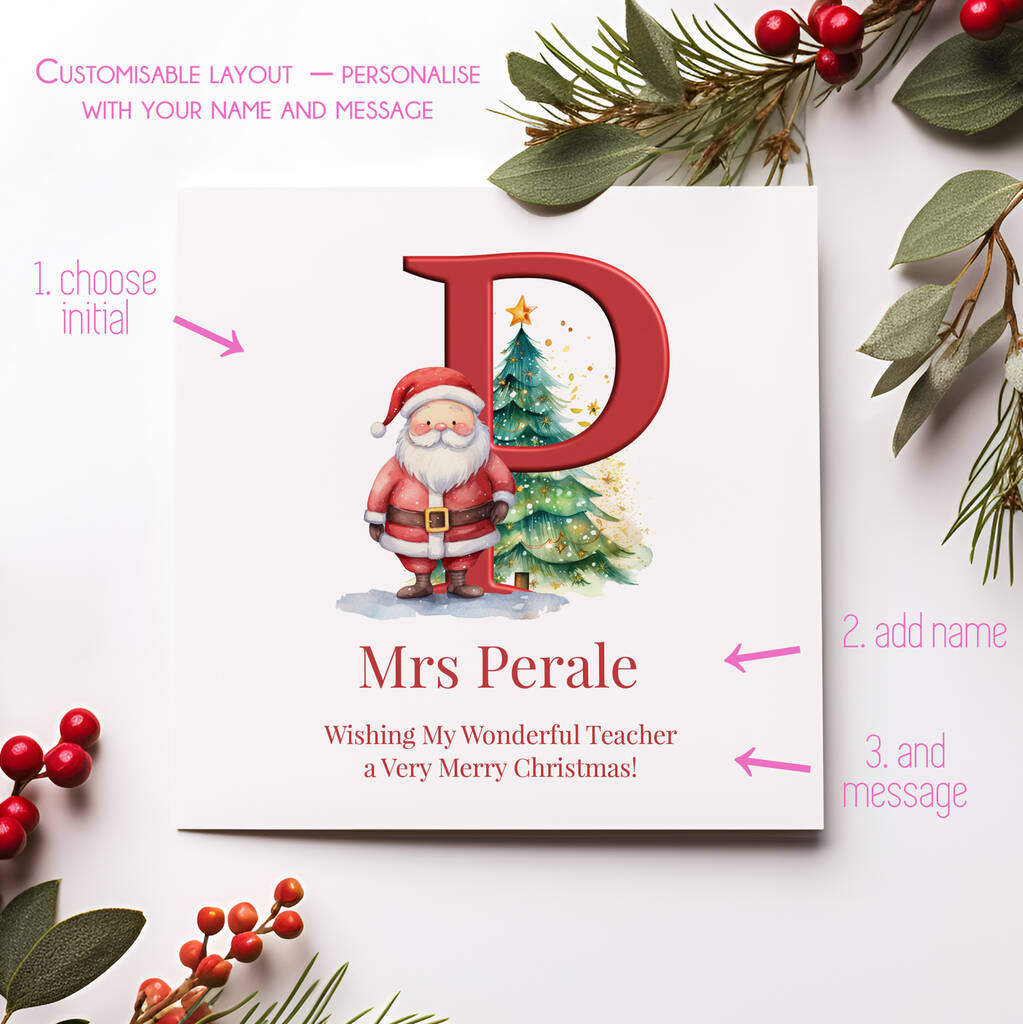Make Christmas extra magical with this personalised initial Christmas card — a beautifully festive keepsake for a truly wonderful teacher.
