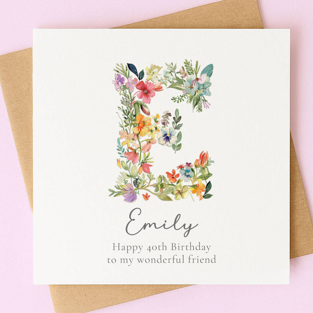 Personalised Wildflower Birthday Card – Any Letter