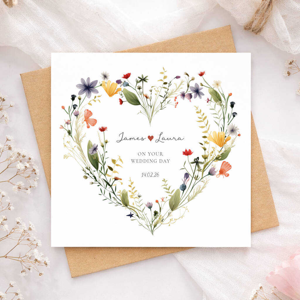 Personalised Wildflower Wedding Day Card