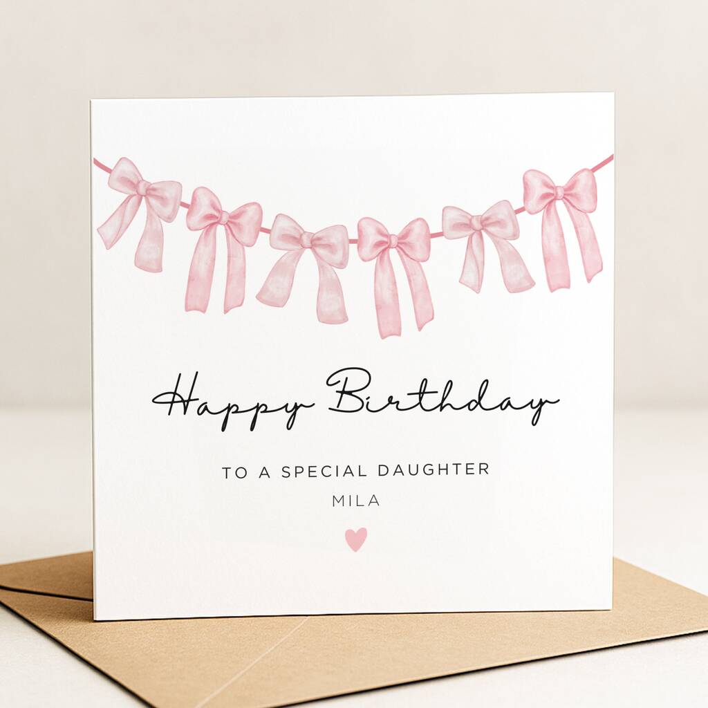 Personalised Pink Bow Birthday Card For Daughter