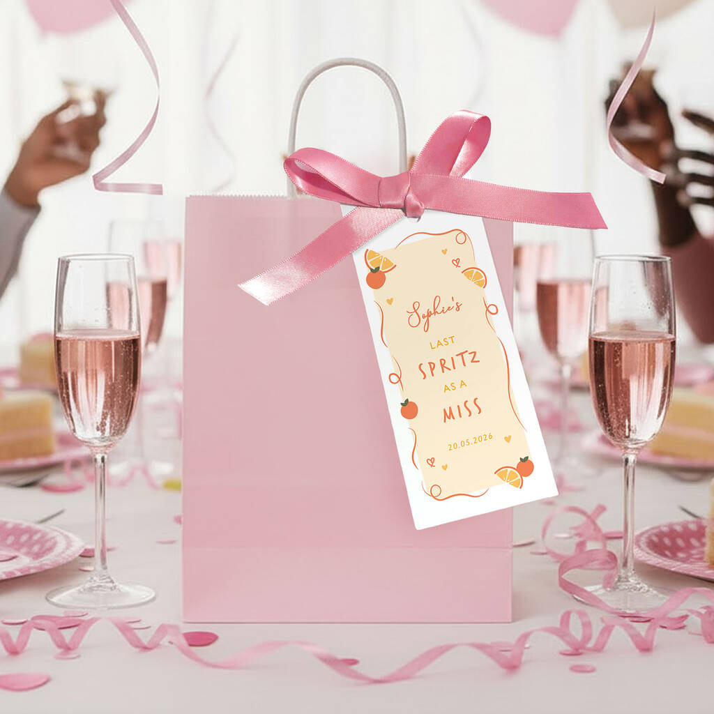 Last Spritz As A Miss Hen Party Ribbon Tag With Gift Bag