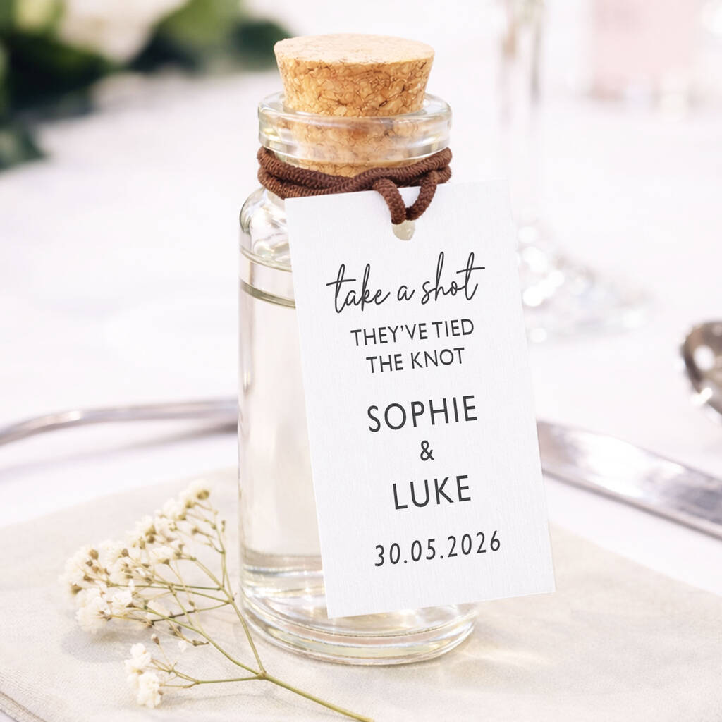 Take A Shot They've Tied The Knot Wedding Favours Personalised Shot Bottle