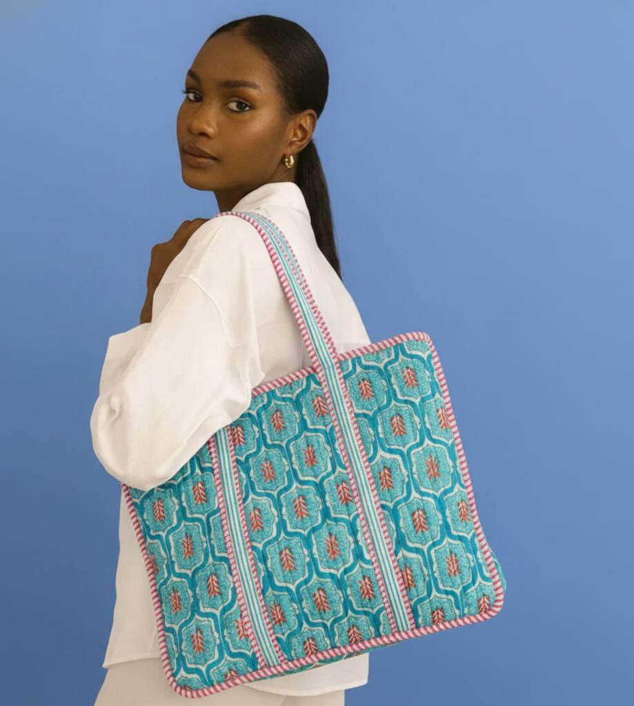 Blue Flower Motif Tote Bag