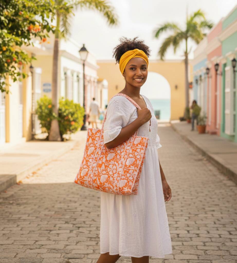 Orange Floral Tote Bag