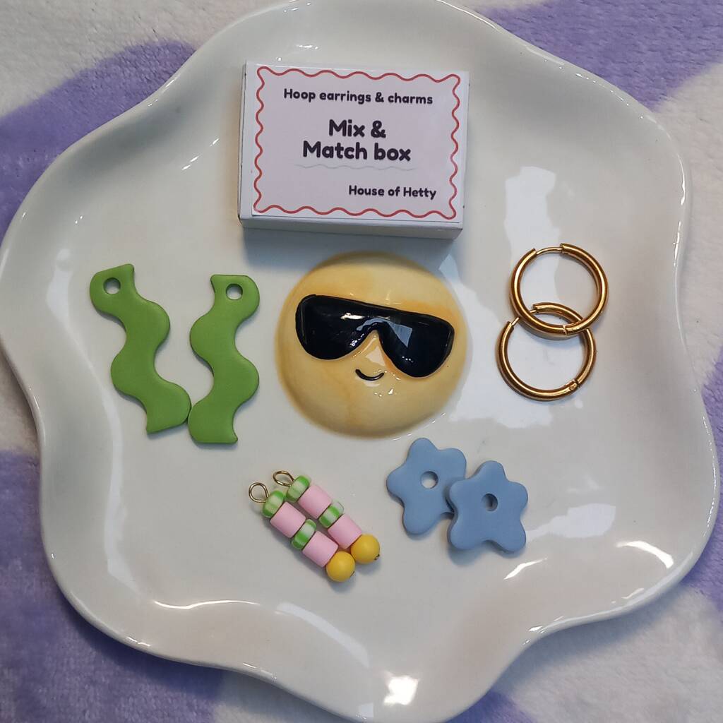 Hoop Earrings And Charms Mix And Match Box Blue Flower