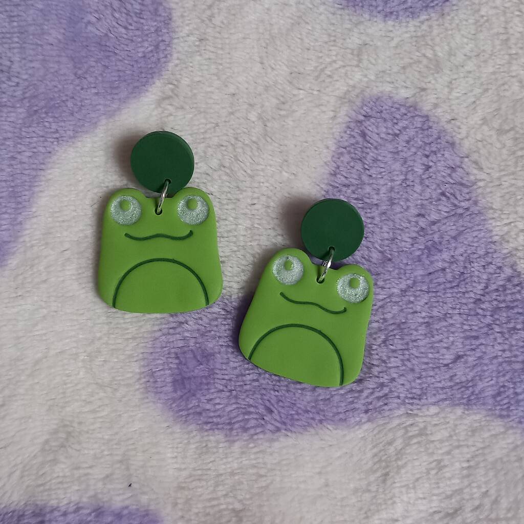 Polymer Clay Cute Frog Dangle Earrings