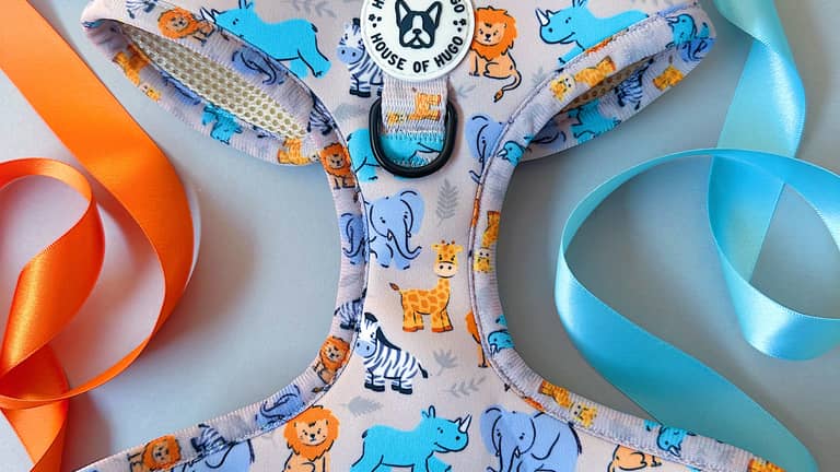 Check out our unique, fun and colourful printed harnesses, leads, waste bags, bow ties and collars!