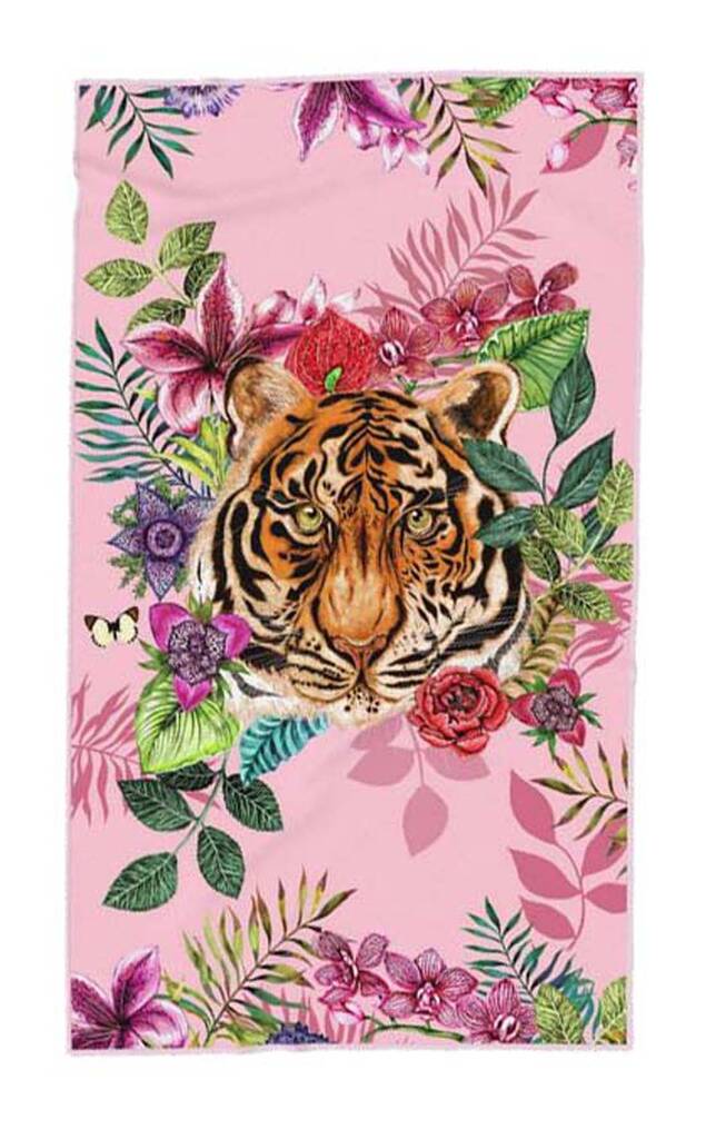 Totem Tiger Tropical Beach Towel In Pink, 1 of 6