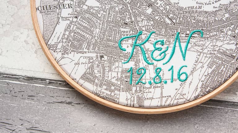 Available framed in a waxed beech wood embroidery hoop, House of Whatnot's products are a fabulous, quirky gift for a second (cotton) anniversary, a wedding, honeymoon, house-warming or christening to name just a few. Multiple locations can be mapped and linked up to remember multi-destination trips, such as backpacking routes or honeymoon travels. They look wonderful when a few are grouped together so are fabulous to collect to commemorate different special occasions.