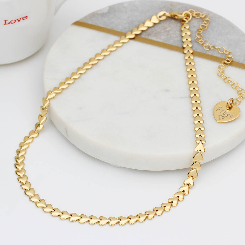 Beautiful sterling silver or 18ct gold plated sterling silver interlinked heart necklace with optional personalised charm, it's the perfect bespoke gift for someone special