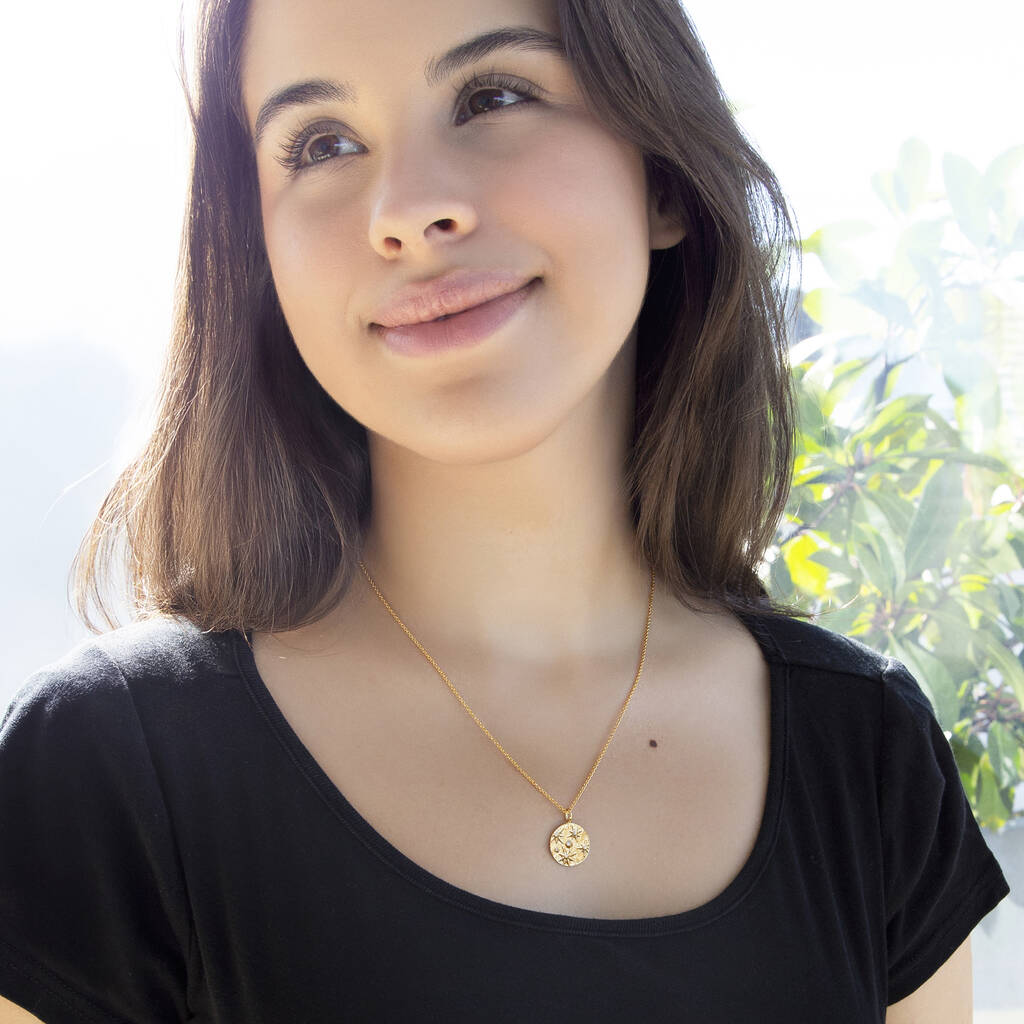 Personalised Sterling Silver Or 18ct Gold Plated Cz Star And Moon Pendant Necklace