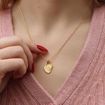 This personalised Gold St Christopher Double Heart Charm Necklace makes the perfect keepsake gift for special occasions or loved ones like daughters and friends.