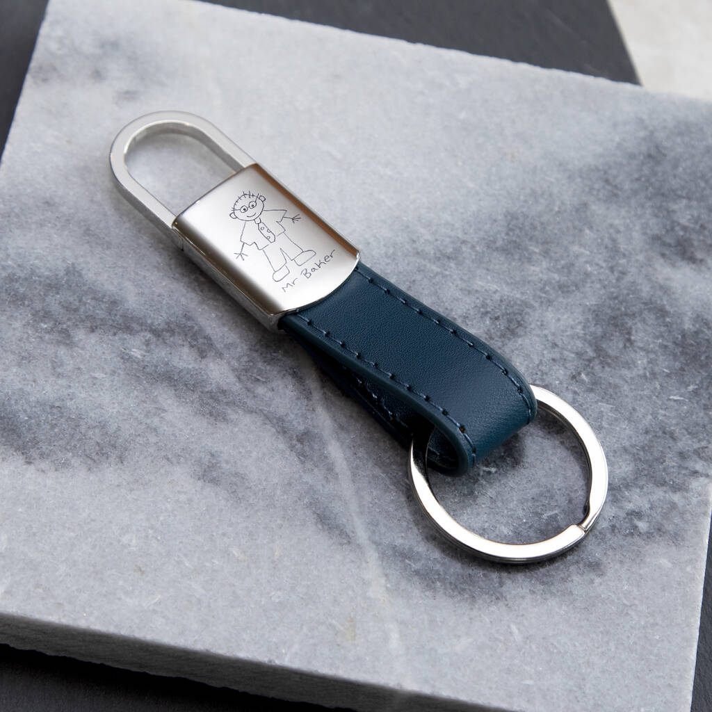 Turn your child's drawing into a custom gift for a dad, mum or grandad. This leather keyring can be engraved with a drawing or message, creating the perfect keepsake for a teacher.