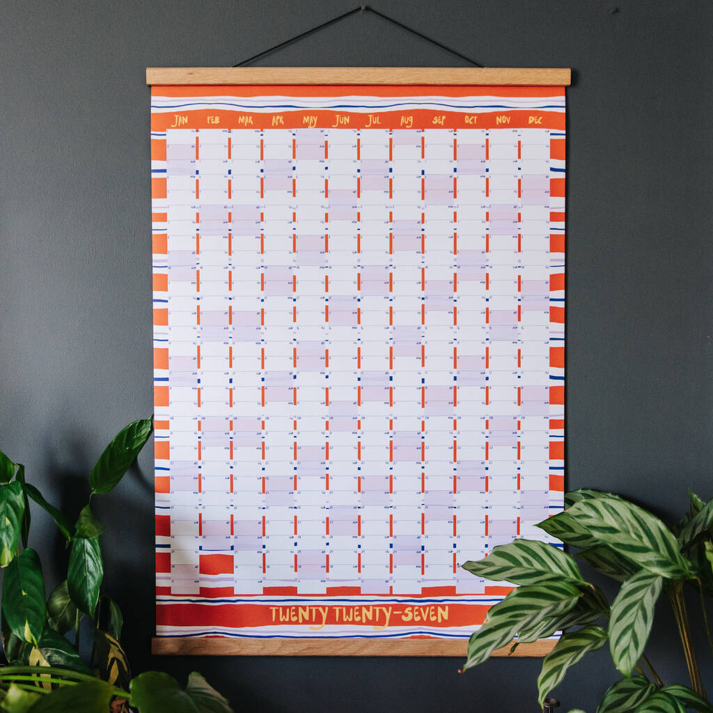 2027 wall planner designed to give you the whole year at a glance, with a bold striped design and fun typography.