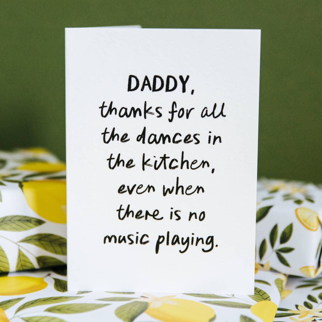 A Mother’s Day, Father’s Day or birthday card for Mum or Dad, made for tthose who turn the kitchen into a dancefloor, music or not.