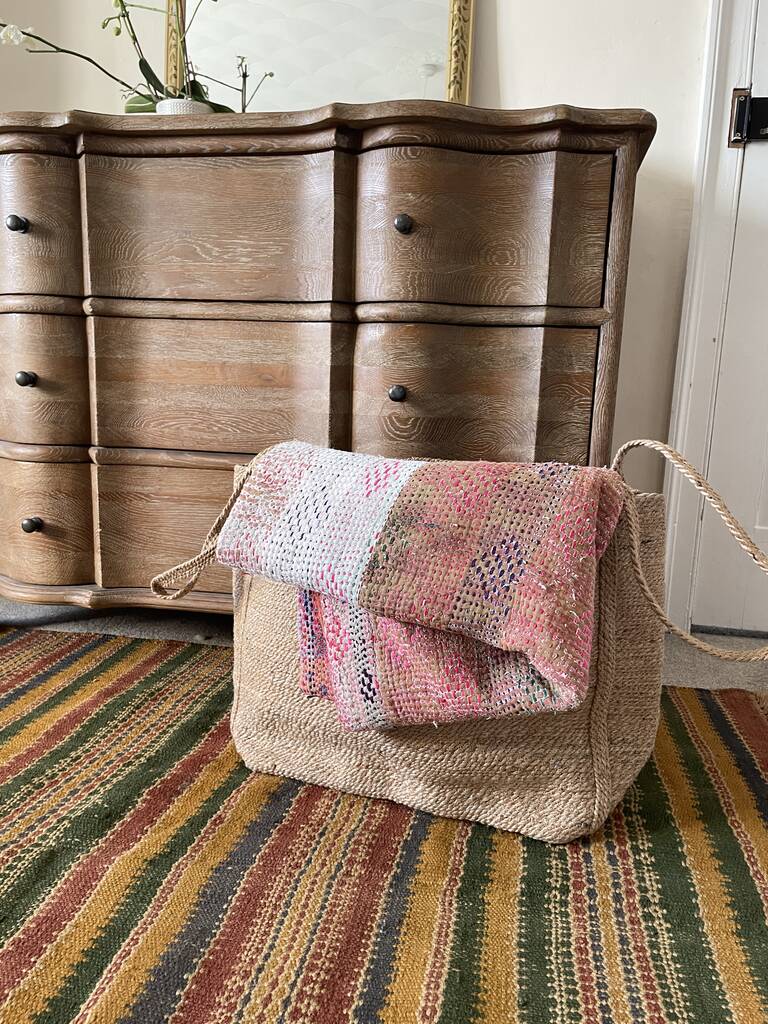 Narrow Handwoven Sisal Storage Basket With Handles