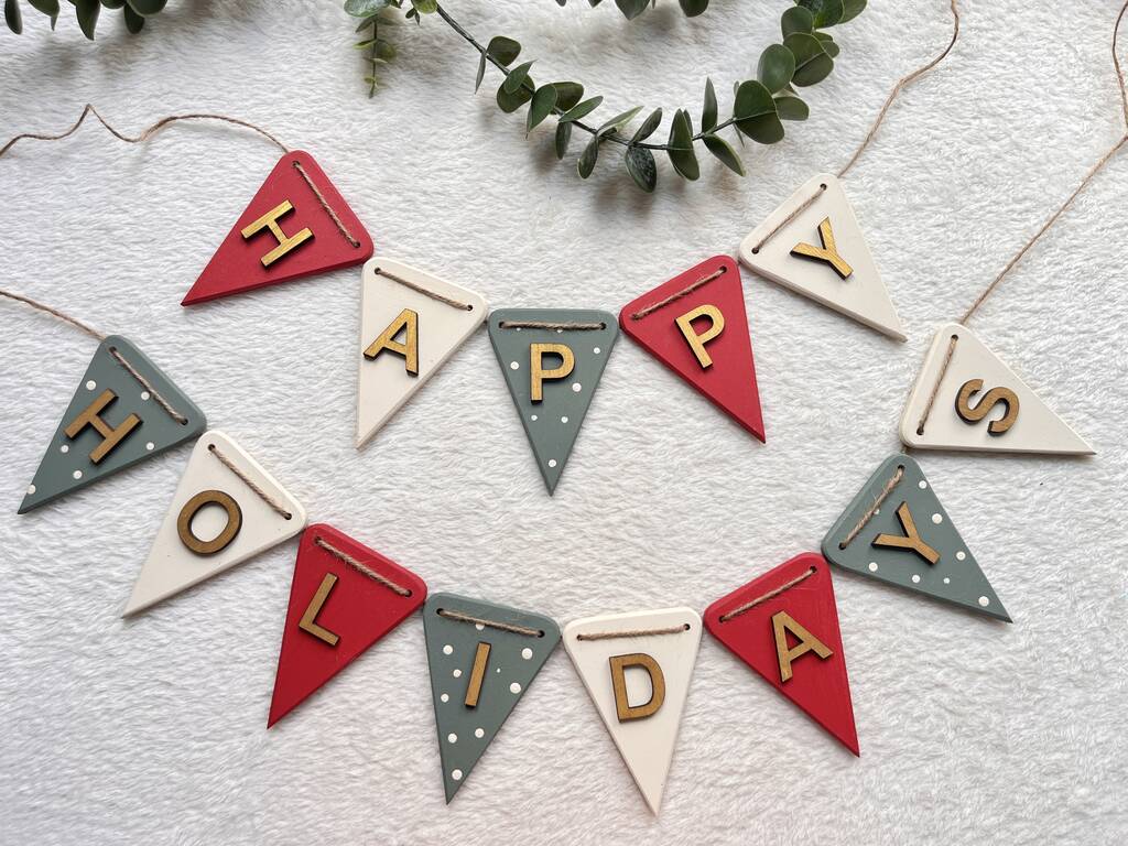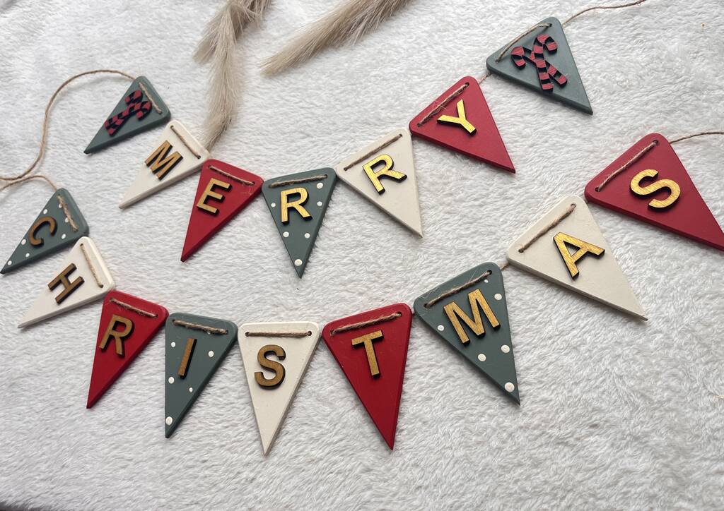 Handcrafted Wooden Christmas Tree Bunting Garland For Festive Home Decor