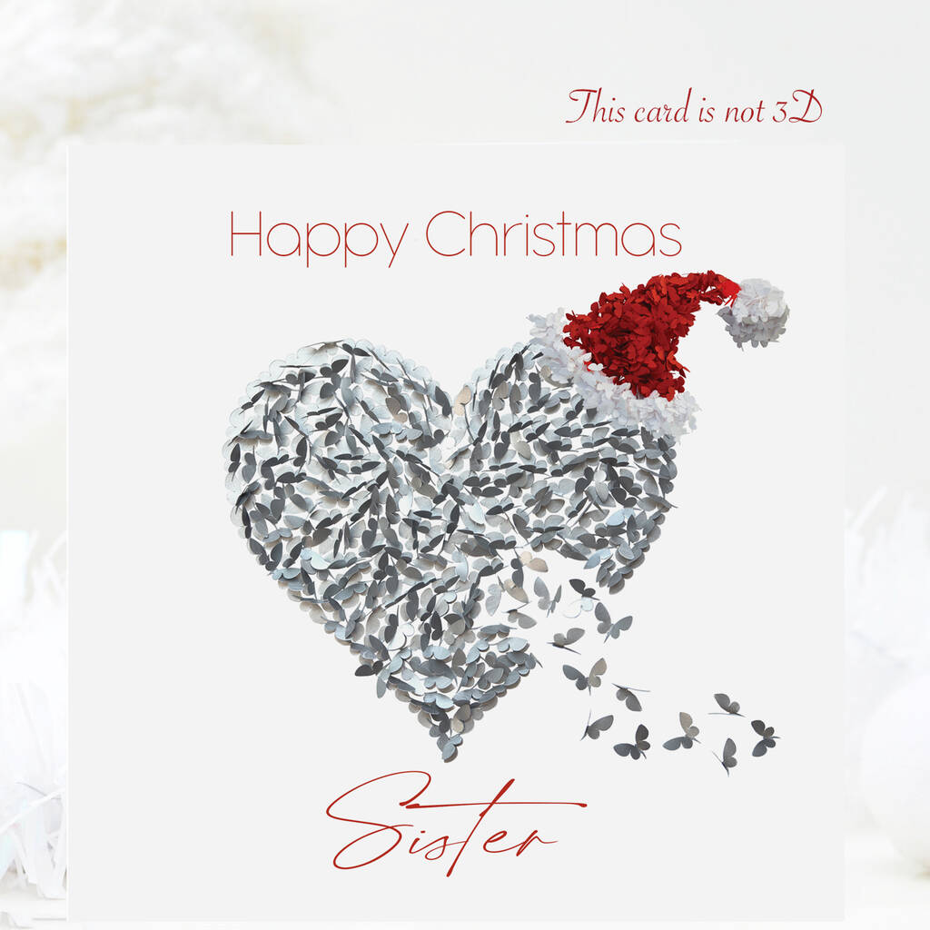 Christmas Sister Silver Butterfly Heart Santa's Hat Card