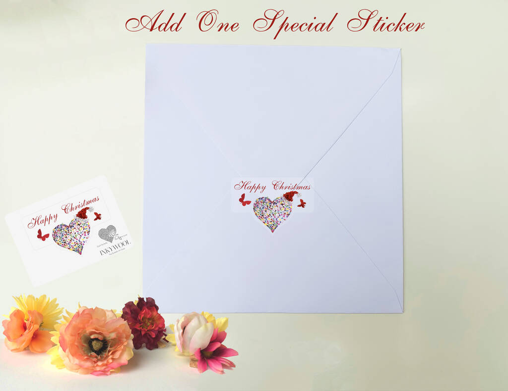 ** ADD ONE KALEIDOSCOPE BUTTERFLY HEART HEART HAPPY CHRISTMAS STICKER