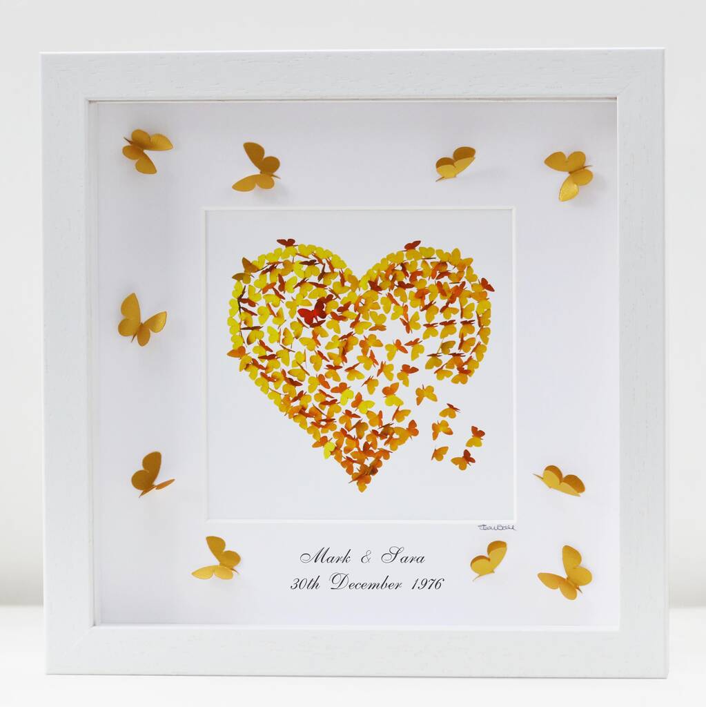 Golden Wedding Anniversary Butterfly Heart Framed Print