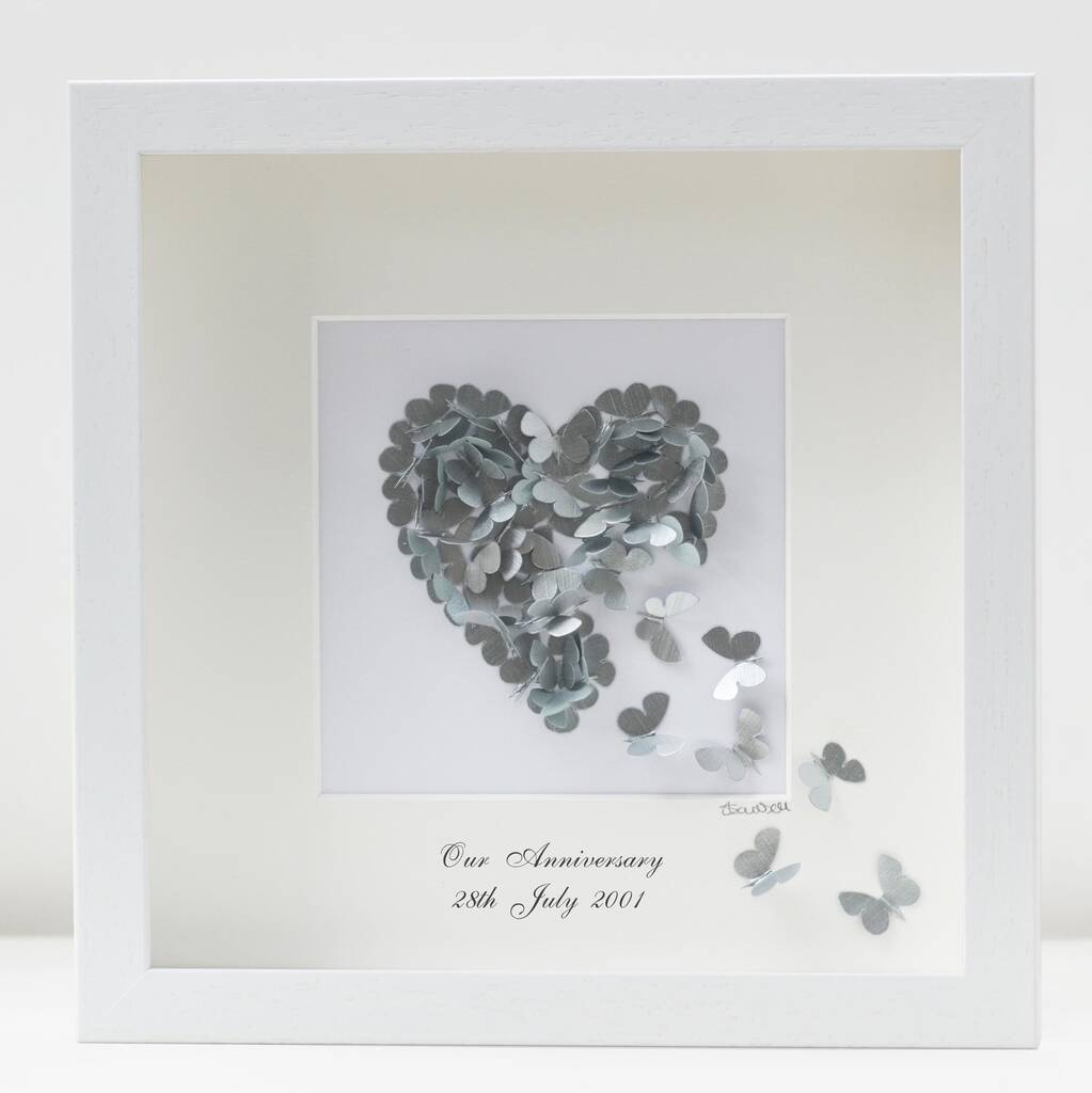 Framed 3D Silver Wedding Anniversary Butterfly Heart, Personalised
